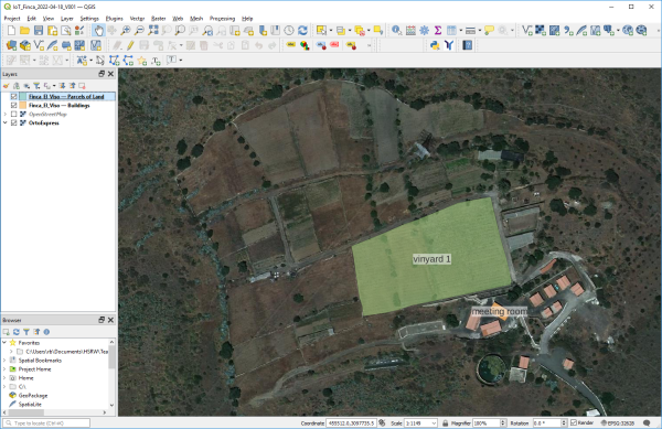 Open geodata can be used to support the project. We want to create maps showing the Finca, its buildings, land parels, landuse and finally the location of sensors and gateways.